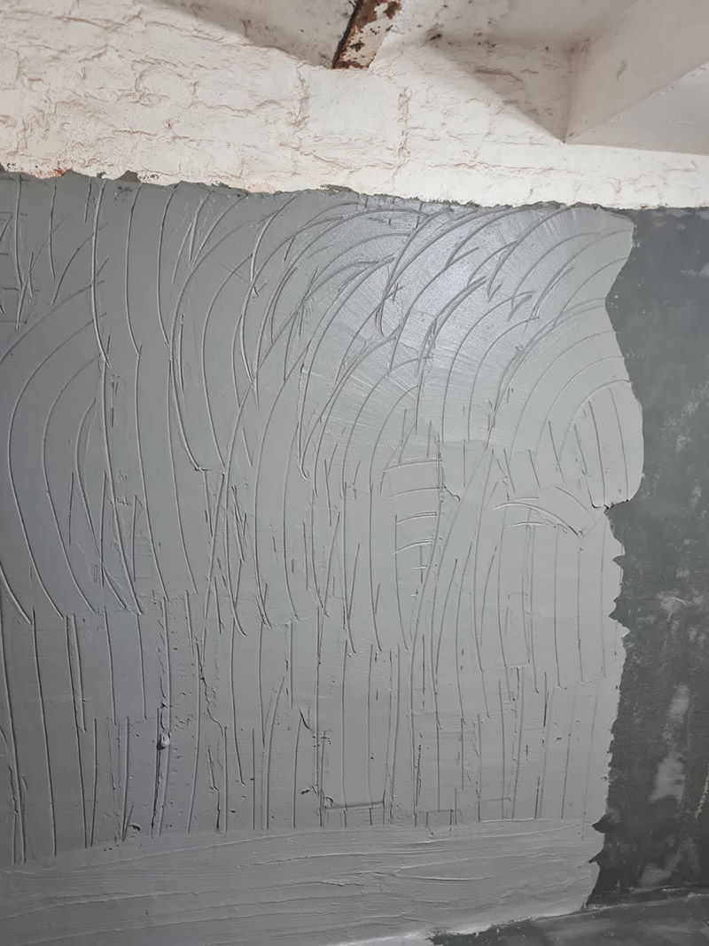 • BKM-Innenabdichtung (druckdicht): Mehrlagiger Auftrag einer speziellen, rissüberbrückenden mineralischen Dichtschlämme zur dauerhaften Abdichtung der Wandflächen gegen drückendes und kapillar aufsteigendes Wasser.