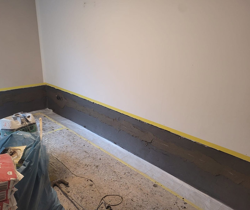 BKM-Vertikalsperre: Zusätzliche Abdichtung angrenzender Wandbereiche zur Vermeidung von Quer- und Nebenfeuchte.
