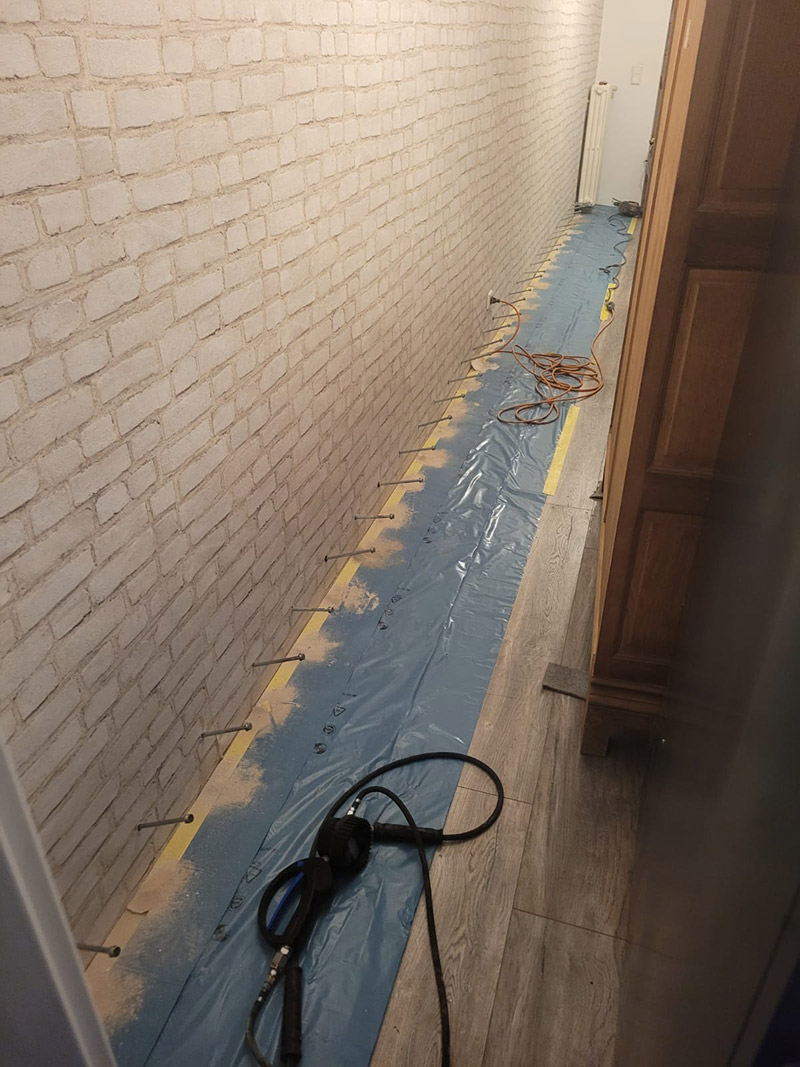 Um zukünftige Risiken auszuschließen, entschieden sich die Eigentümer zusätzlich dafür, auch den angrenzenden Flurbereich präventiv gegen Feuchtigkeit zu sichern.